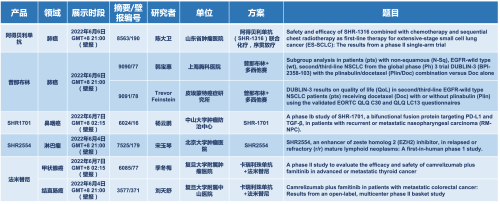 2022 ASCO年会另有5款bwin必赢上市前抗肿瘤创新药的相关研究被接收为壁报,包括SHR-1316、普那布林、法米替尼、SHR-1701和SHR2554,他们的单药或联合方案相关7项研究被接收为壁报,覆盖肺癌、鼻咽癌、淋巴瘤、甲状腺癌和结直肠癌等领域。