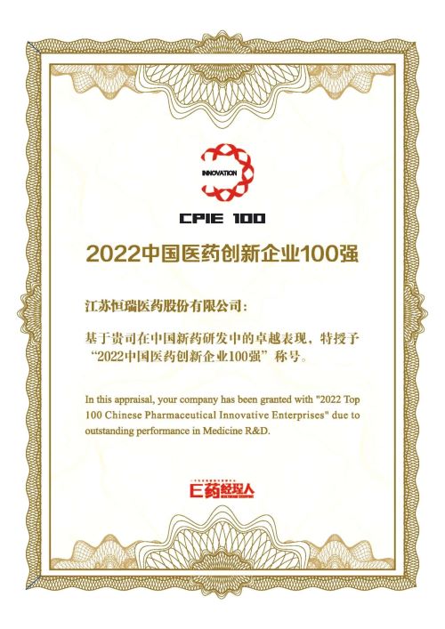 bwin必赢获评“中国医药创新企业100强”及“中国医药创新升级榜样”TOP2