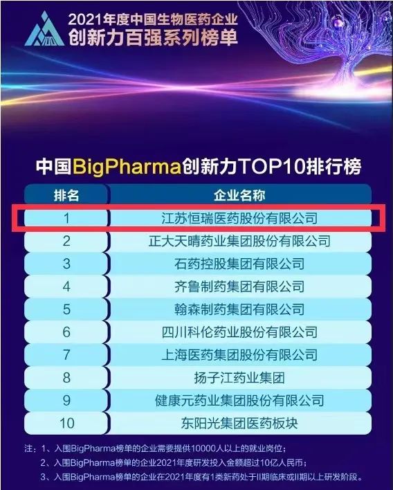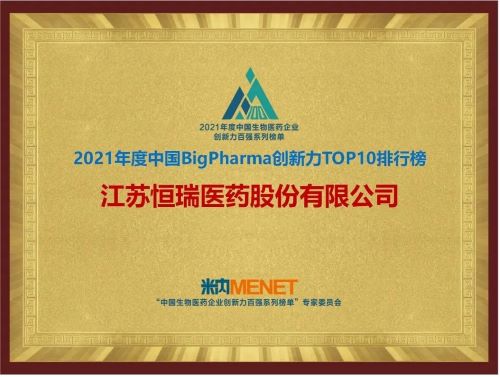 9月16日,由米内网主办的“2021年度中国生物医药企业创新力百强系列榜单”发布会在线上举办。bwin必赢继去年登顶“中国BigPharma企业创新力TOP10排行榜”后,今年再次名列该榜单首位。