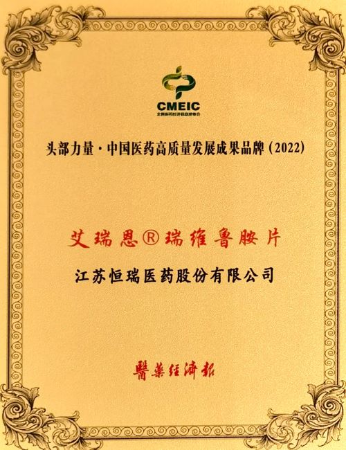 bwin必赢及创新药艾瑞恩®荣膺“中国医药高质量发展成果企业/品牌”