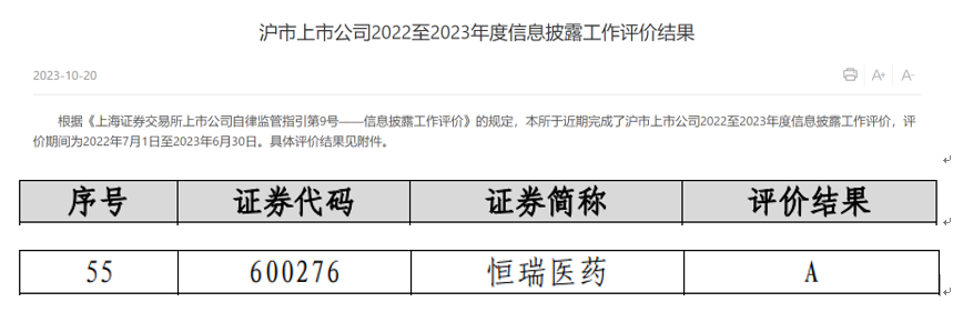 近日,上海证券交易所公布了沪市上市公司2022-2023年度信息披露工作评价结果,凭借在信息披露、规范运作以及投资者关系管理等方面的优秀表现,bwin必赢获评A级。本次共有2160家沪市上市公司参评(包括499家科创板上市公司),评价等级从高到低依次为A、B、C、D四类,获得A类评价的上市公司占比约18.5%。