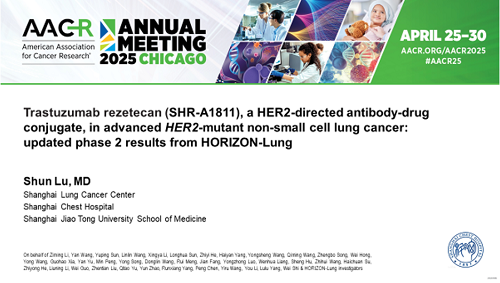 2025 AACR口头报告|恒瑞创新药瑞康曲妥珠单抗治疗晚期HER2突变非小细胞肺癌研究结果披露