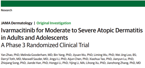 [1] Zhao Y, Gooderham M, Yang B, et al. Ivarmacitinib for Moderate to Severe Atopic Dermatitis in Adults and Adolescents: A Phase 3 Randomized Clinical Trial. JAMA Dermatol. Published online April 30, 2025. doi:10.1001/jamadermatol.2025.0982.