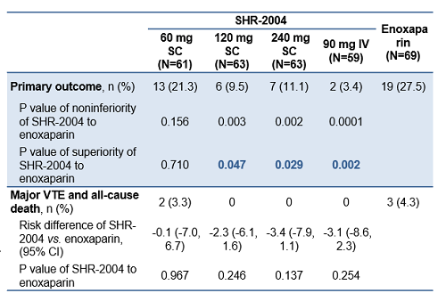 与对照组相比,SHR-2004预防择期TKA术后患者VTE具有更令人鼓舞的疗效。且SHR-2004整体耐受性良好,出血风险低,安全性可控。SHR-2004有望为TKA术后患者预防VTE提供新的治疗选择。
