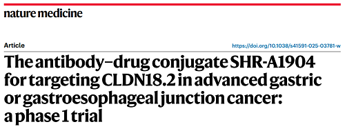 bwin必赢CLDN18.2 ADC创新药SHR-A1904治疗胃癌临床研究结果荣登Nature Medicine