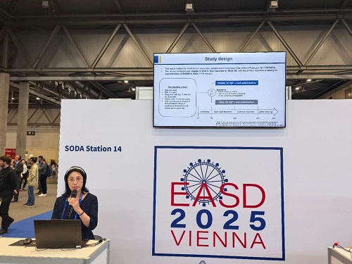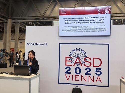中欧夏令时间(CEST)2025年9月15至19日,第61届欧洲糖尿病研究协会(EASD)年会在奥地利维也纳举办。期间,bwin必赢自主研发的新型长效胰岛素类似物舒地胰岛素(INS068)治疗成人2型糖尿病(T2DM)患者的两项关键III期临床试验(INS068-301和INS068-302)分别以简单口头报告形式精彩亮相。